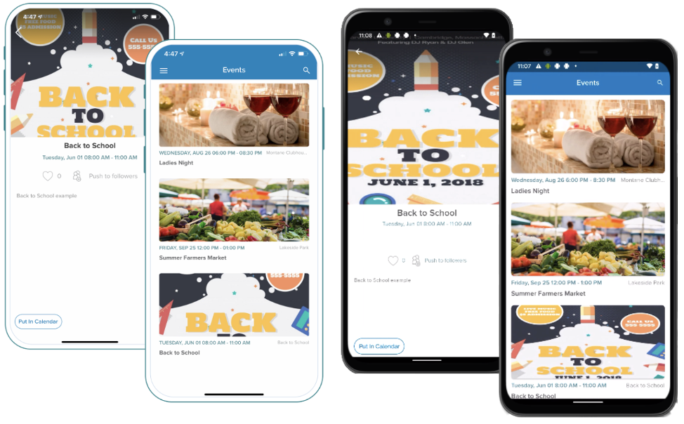 Below are two image examples and how they appear in the app pages or events, including results from one example iOS device and one example Android device.
